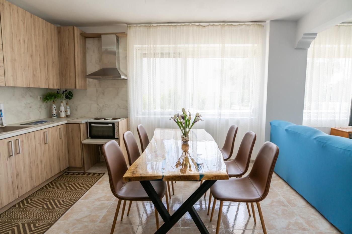 The spacious apartment is located on the ground floor and is fitted with 2 bedrooms, a flat-screen TV and a fully equipped kitchen that provides guests with a microwave, a fridge, a washing machine, a stovetop and kitchenware. Towels and bed linen are offered in the apartment. The property has an outdoor dining area.