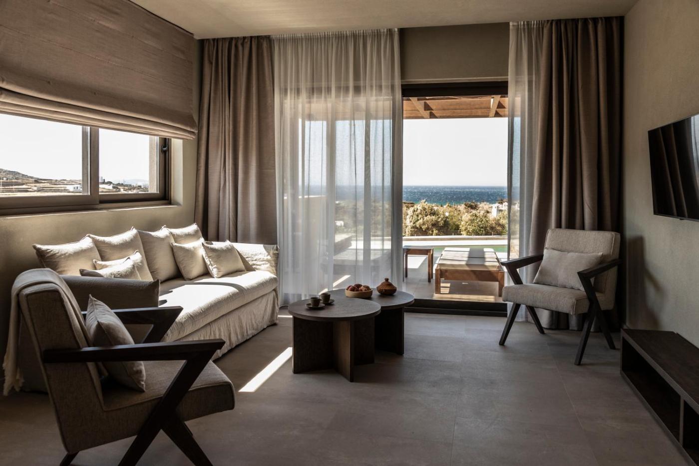 Ela Two-Bedroom Suite | Jetted Tub | Sea View. This suites standout features are the hot tub and spa bath. Featuring a private entrance, this spacious suite also is comprised of 1 bedroom, a seating area and 1 bathroom with a shower and a hairdryer. Boasting a terrace with sea views, this suite also offers air conditioning and a flat-screen TV. The unit offers 2 beds. ;