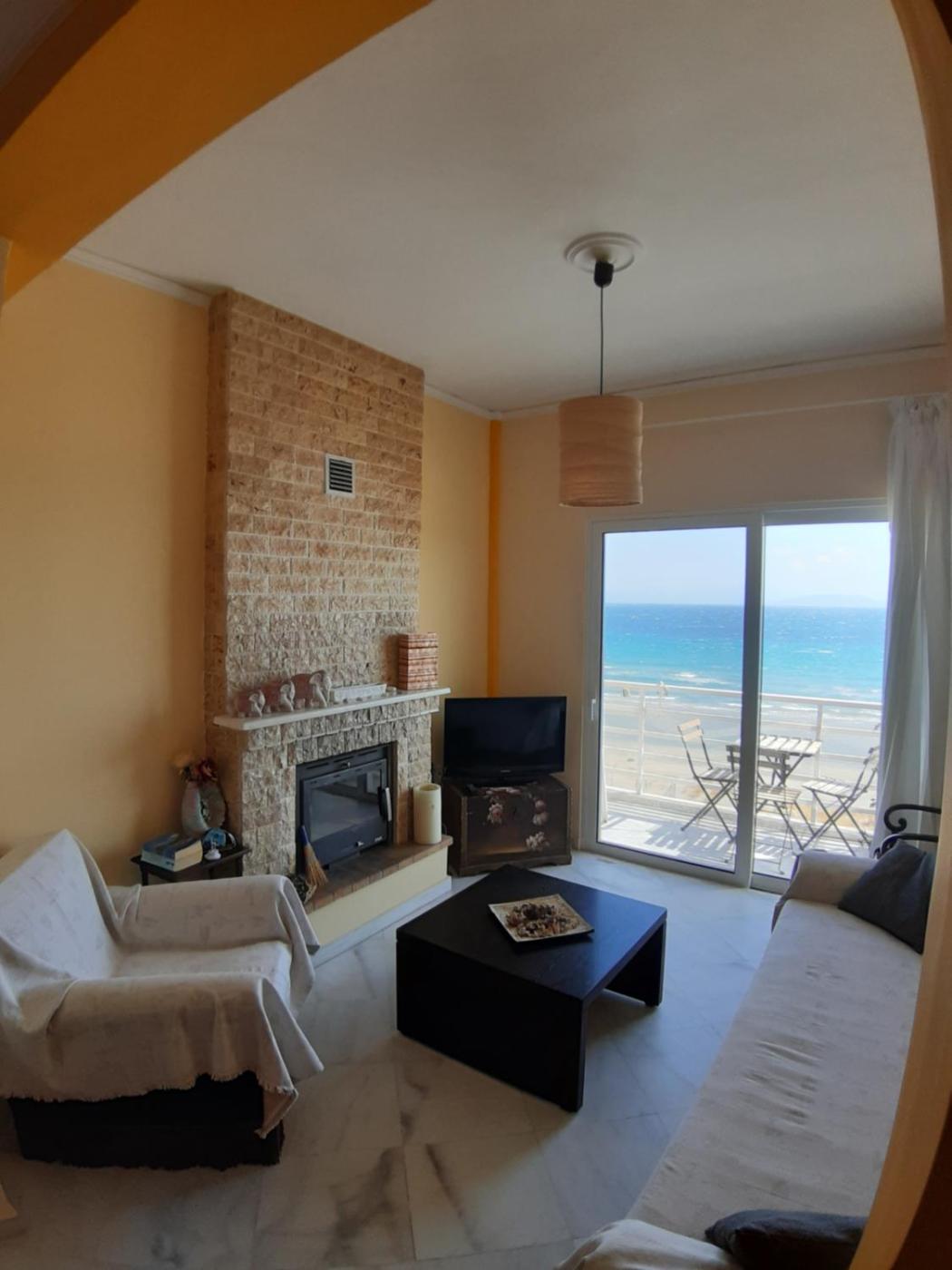 Apartment with Sea View. This apartments special feature is the fireplace. Featuring a private entrance, this air-conditioned apartment consists of 1 living room, 1 separate bedroom and 1 bathroom with a walk-in shower and a hairdryer. A kitchen equipped with a stovetop, a refrigerator and kitchenware is available for cooking and storing food. Boasting a balcony with sea views, this apartment also provides a tea and coffee maker and a flat-screen TV with streaming services. The unit offers 2 beds.
