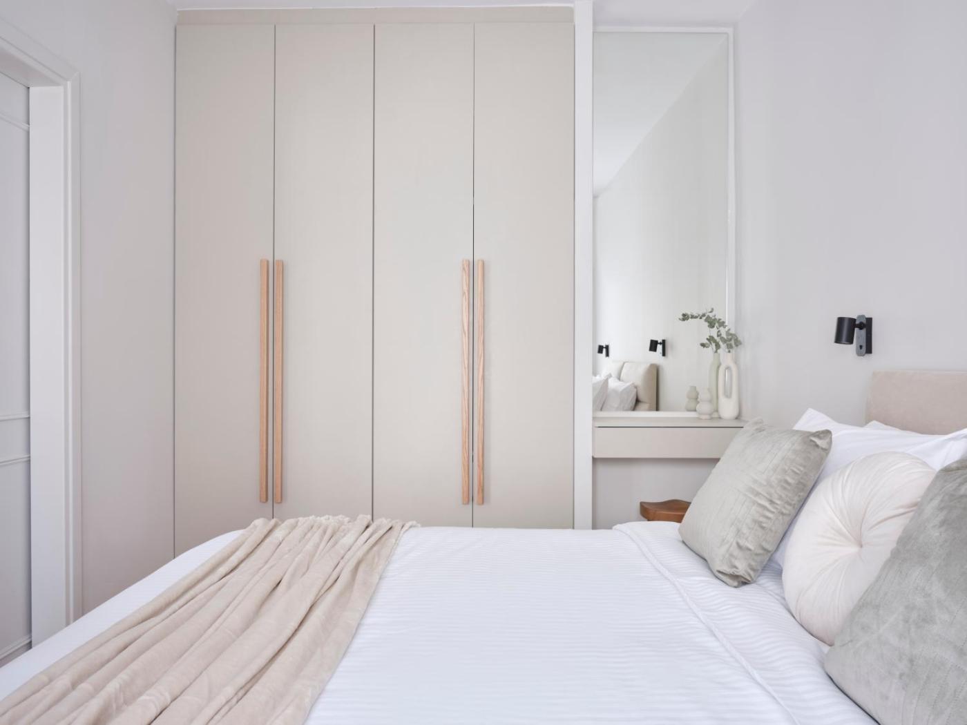 Two-Bedroom Apartment. This spacious apartment comes with 1 living room, 2 separate bedrooms and 2 bathrooms with a shower and free toiletries. Guests can make meals in the kitchen that features a stovetop, a refrigerator, a dishwasher and an oven. The air-conditioned apartment features a flat-screen TV, a washing machine, soundproof walls, a tea and coffee maker as well as city views. The unit has 3 beds.