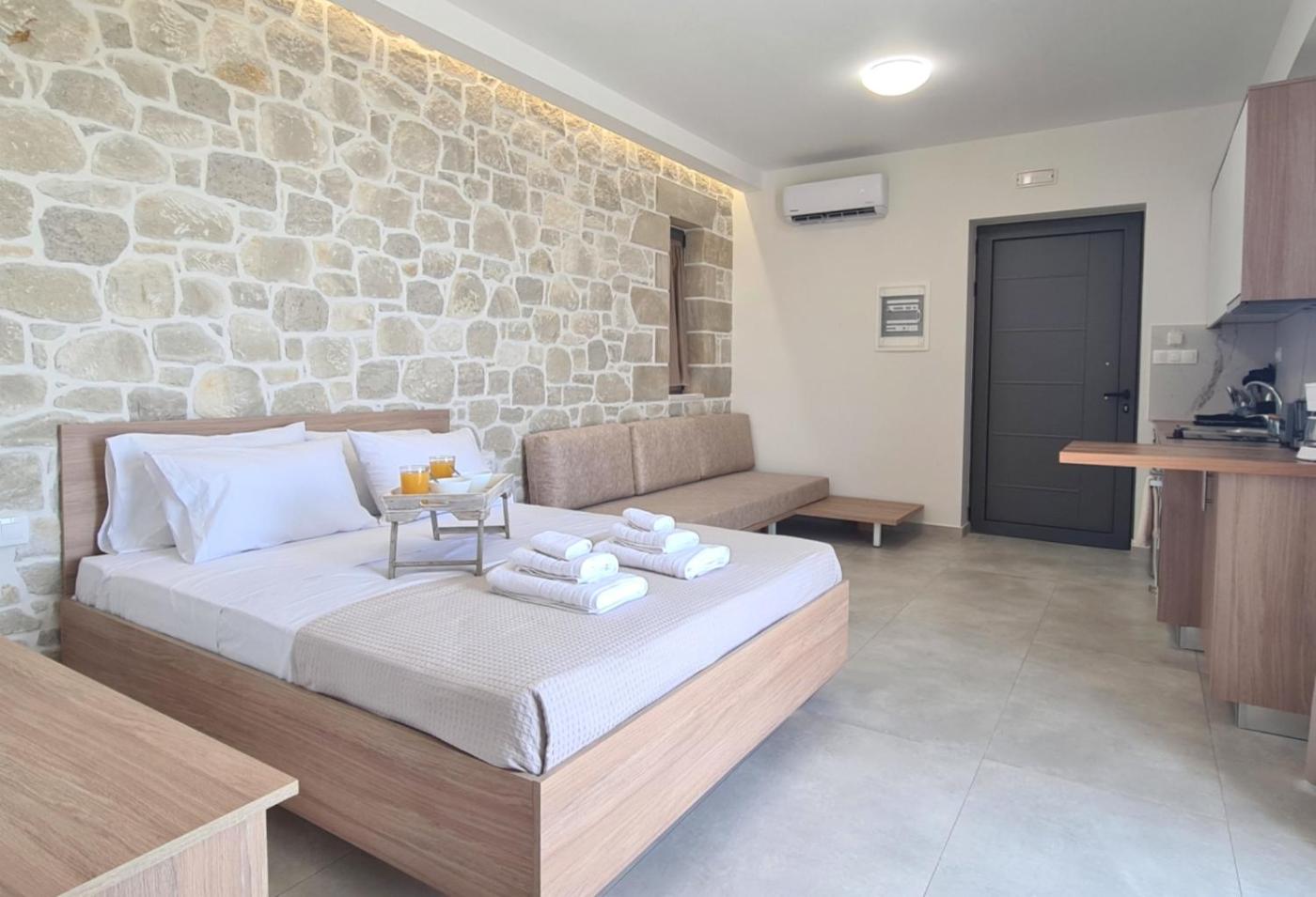 King Studio with Sofa Bed. In the kitchen, guests will find a stovetop, a refrigerator, kitchenware and an oven. This air-conditioned studio includes a flat-screen TV with satellite channels, a private bathroom as well as a terrace with sea views. The unit offers 2 beds.