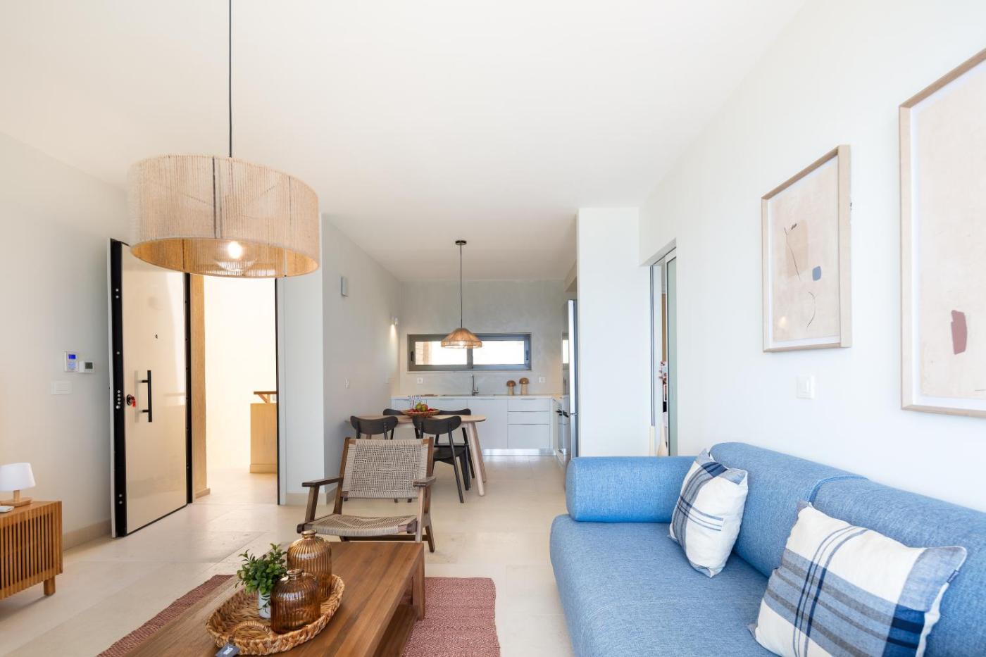 Two-Bedroom Apartment. This spacious apartment features 1 living room, 2 separate bedrooms and 1 bathroom with a shower and free toiletries. In the fully equipped kitchen, guests will find a stovetop, a refrigerator, a dishwasher and an oven. The air-conditioned apartment features a flat-screen TV, a washing machine, a coffee machine, a seating area as well as sea views. The unit has 3 beds.