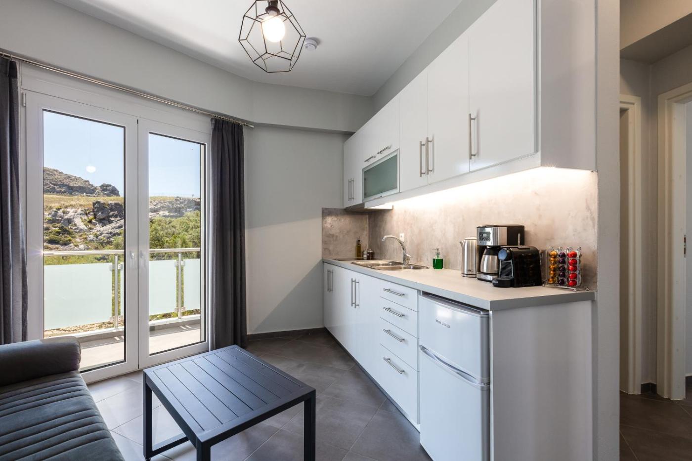 One-Bedroom Apartment. Featuring a private entrance, this air-conditioned apartment consists of 1 living room, 1 separate bedroom and 1 bathroom with a shower and a hairdryer. Guests can make meals in the kitchen that is equipped with a stovetop, a refrigerator, kitchenware and a tea and coffee maker. Boasting a balcony with sea views, this apartment also provides soundproof walls and a flat-screen TV with cable channels. The unit offers 2 beds.