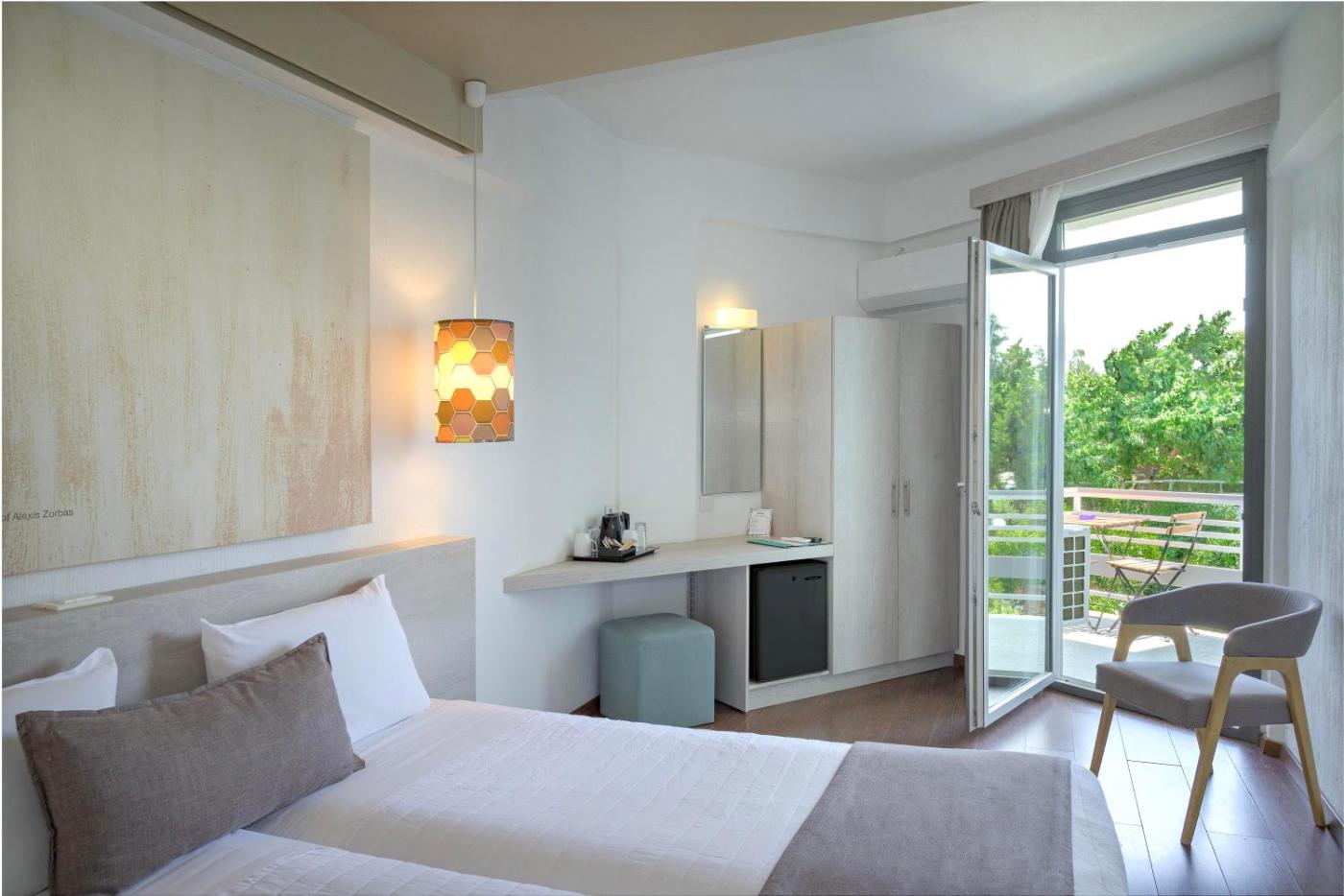 Twin or Double Room with Garden View. Air-conditioned room with a satellite TV, mini fridge and balcony. Some rooms enjoy sea views. ;
