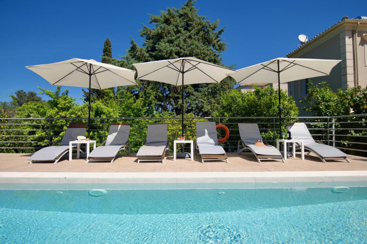 Guests can enjoy the outdoor swimming pool and garden at the villa.