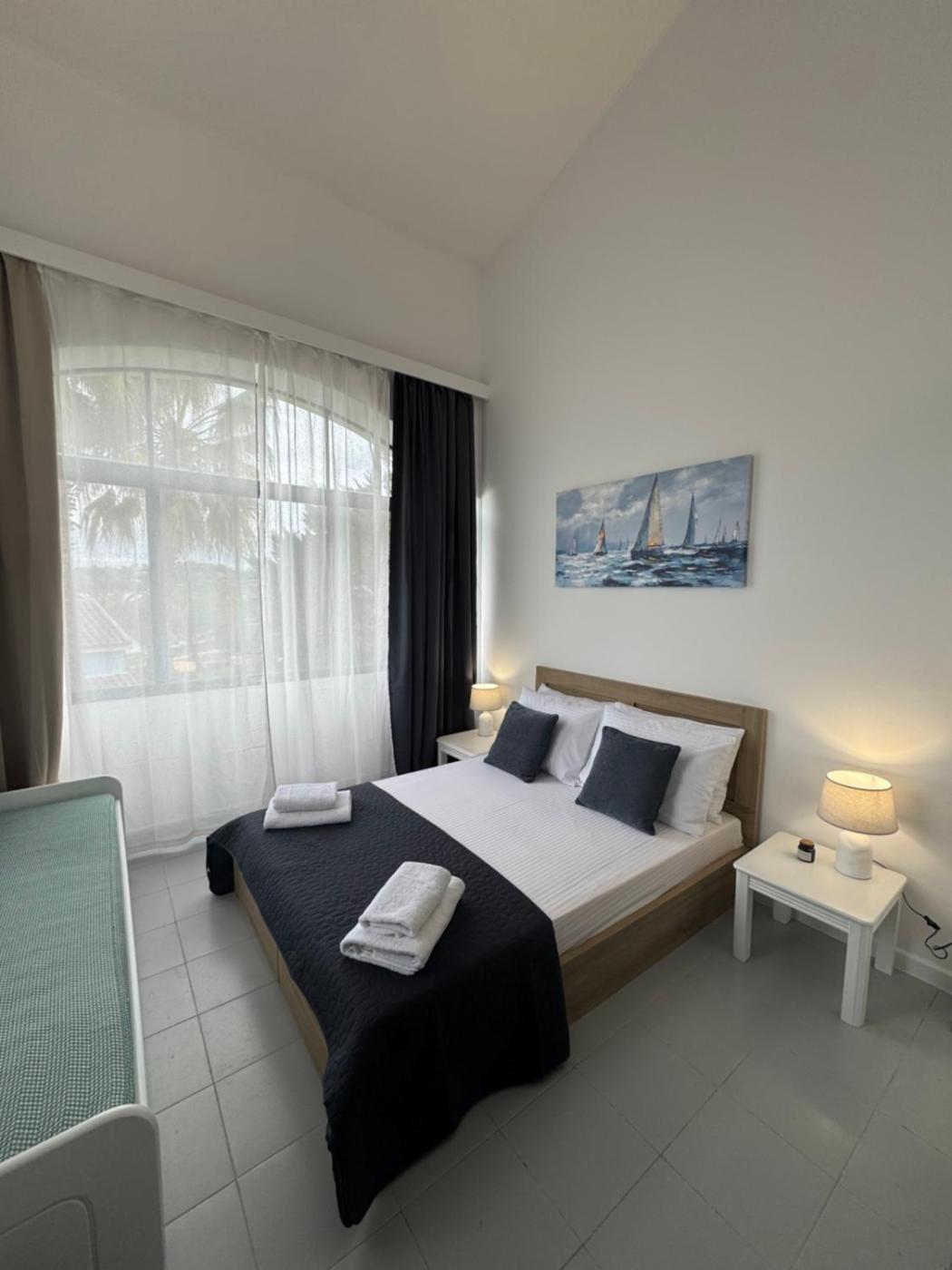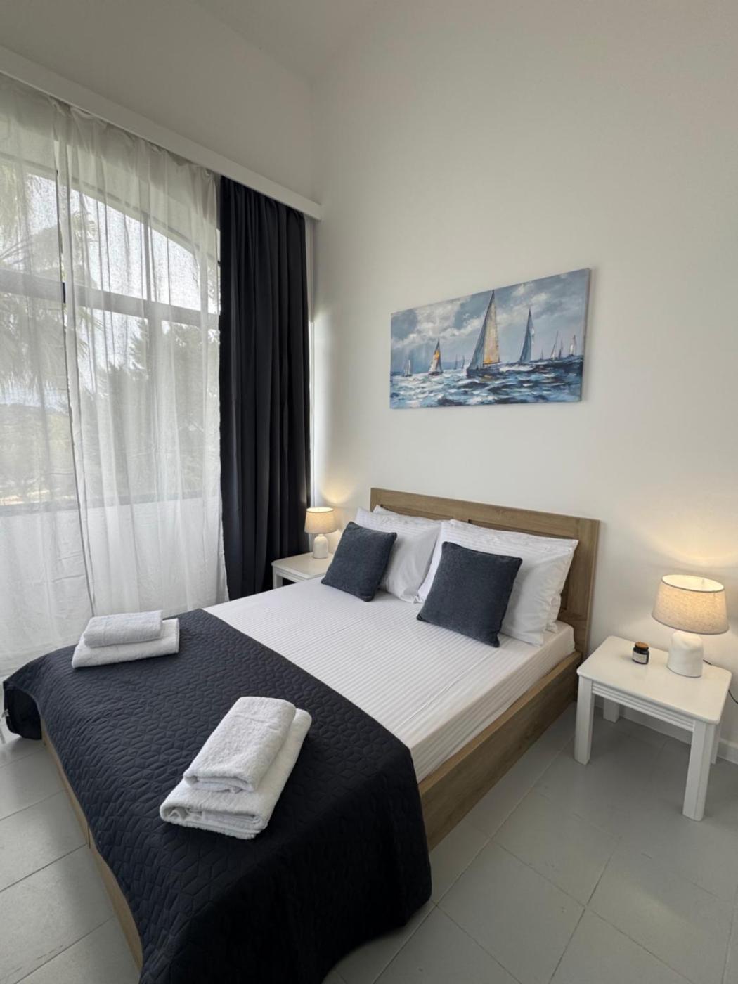 Two-Bedroom Apartment. The air-conditioned apartment features 1 bedroom and 1 bathroom with a bath and a hairdryer. The well-fitted kitchenette has a refrigerator, kitchenware and a microwave. The apartment provides a tea and coffee maker, a wardrobe, a tiled floor, a flat-screen TV, as well as garden views. The unit offers 4 beds.