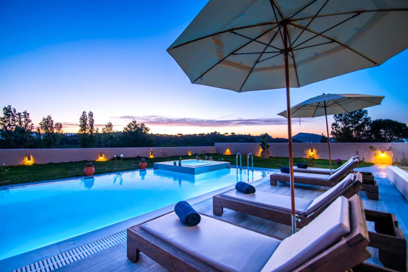 Guests can enjoy the outdoor swimming pool at the villa.