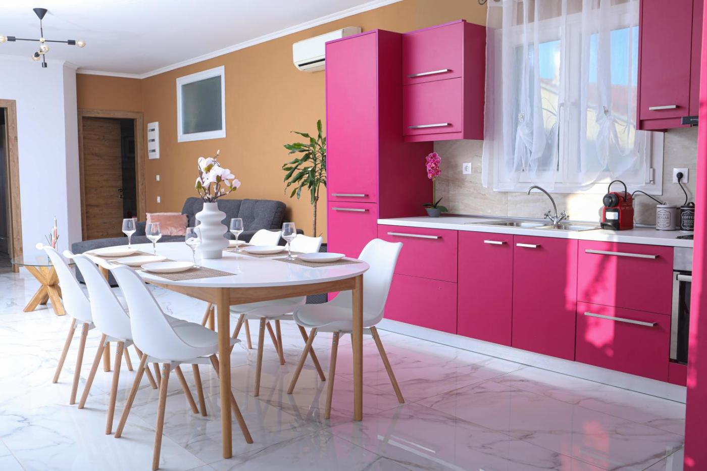 Two-Bedroom Apartment. This spacious apartment features 1 living room, 2 separate bedrooms and 1 bathroom with a shower and a hairdryer. The well-equipped kitchen has a stovetop, a refrigerator, kitchenware and an oven. The air-conditioned apartment features a flat-screen TV with streaming services, a washing machine, a coffee machine, a seating area as well as sea views. The unit has 3 beds.