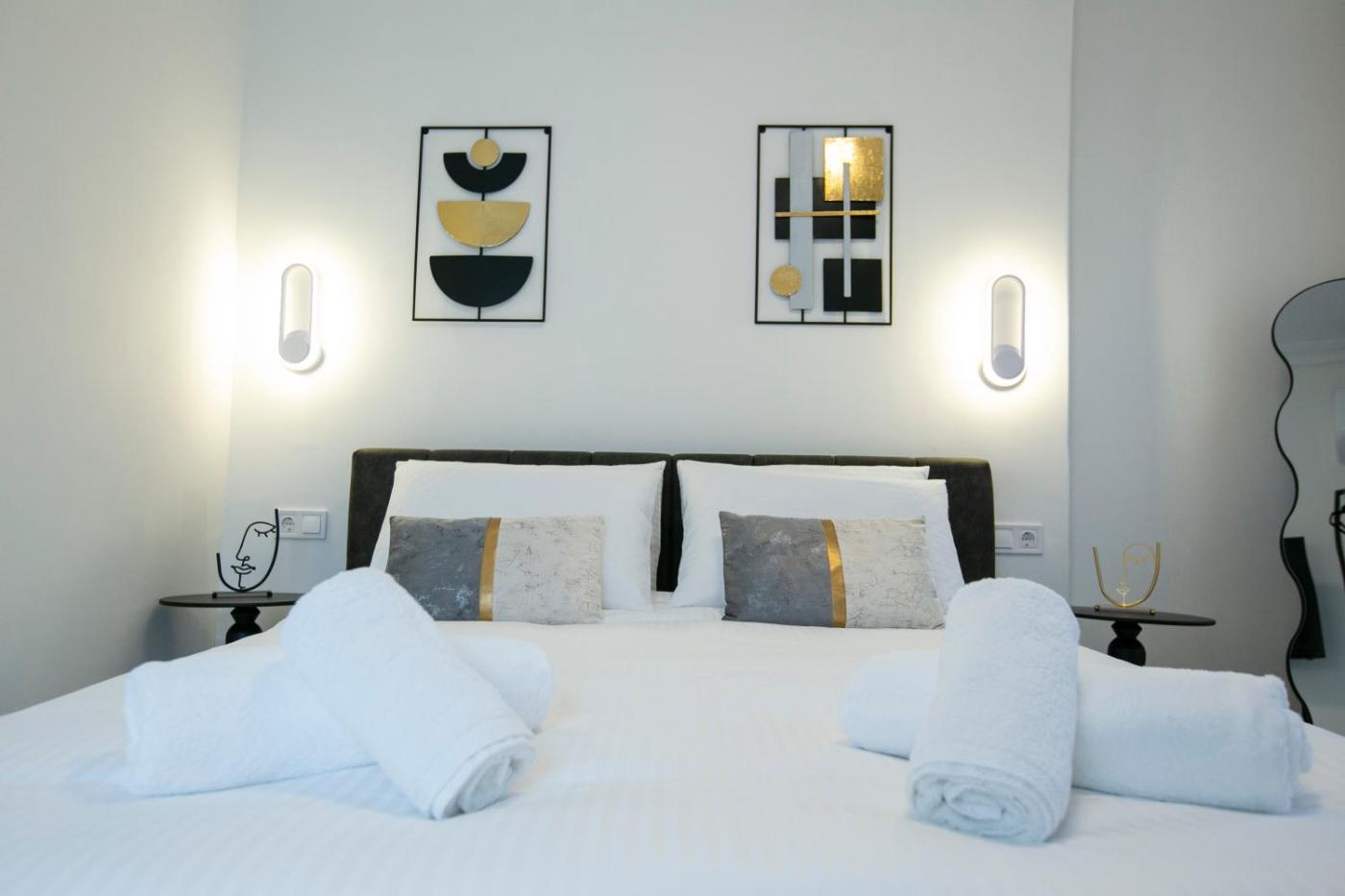 Two-Bedroom Apartment. This spacious apartment comes with 1 living room, 2 separate bedrooms and 1 bathroom with a shower and free toiletries. Guests can make meals in the kitchen that features a stovetop, a refrigerator, kitchenware and an oven. The air-conditioned apartment features a flat-screen TV with streaming services, a washing machine, a private entrance, soundproof walls as well as ancourtyard view. The unit has 3 beds.