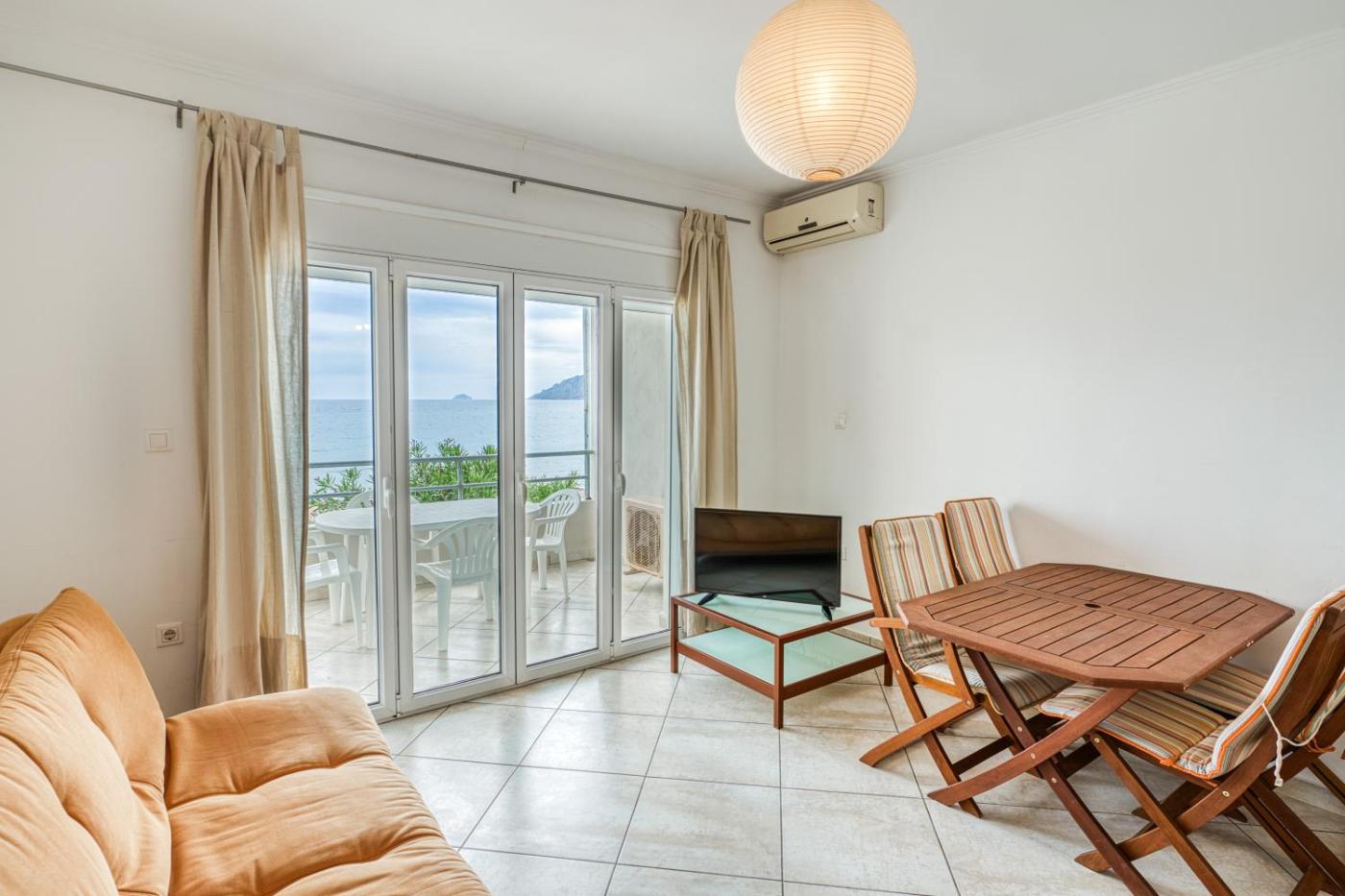 The apartment with a balcony and sea views has 1 bedroom, a living room, a flat-screen TV, an equipped kitchen with a fridge and a stovetop, and 1 bathroom with a shower. Towels and bed linen are available in the apartment. The property has an outdoor dining area.