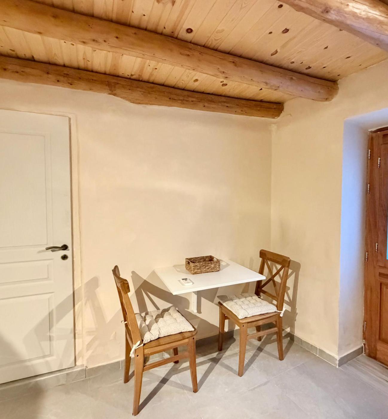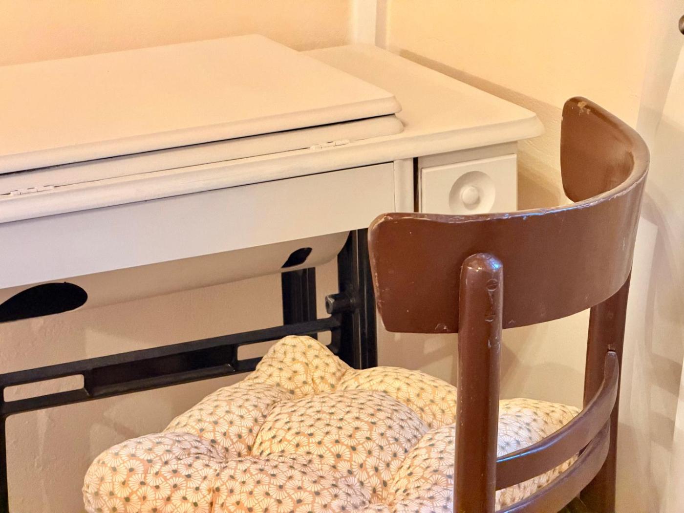 The holiday home with a terrace and quiet street views has 1 bedroom, a living room, a flat-screen TV, an equipped kitchen with a fridge and a stovetop, and 1 bathroom with a shower. Towels and bed linen are available in the holiday home. The property has an outdoor dining area.