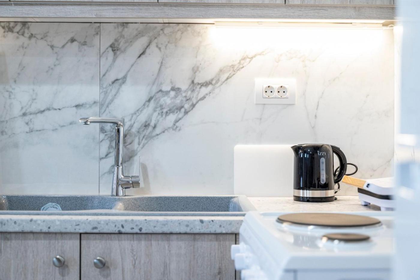 One-Bedroom Apartment. Featuring a private entrance, this air-conditioned apartment consists of 1 living room, 1 separate bedroom and 1 bathroom with a hairdryer and slippers. Guests can make meals in the kitchen that is equipped with a refrigerator, kitchenware, an oven and a tea and coffee maker. Boasting a terrace with sea views, this apartment also provides a washing machine and a flat-screen TV. The unit offers 3 beds.