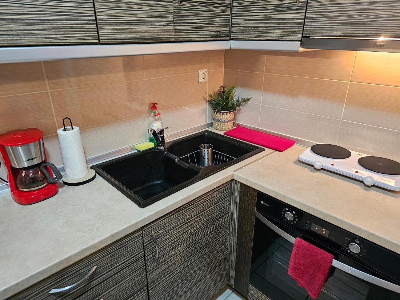 The apartment comes with a flat-screen TV. The kitchen is equipped with an oven, a toaster and a fridge, as well as coffee machine and kettle. The accommodation offers an air conditioning, a heating and a private bathroom.