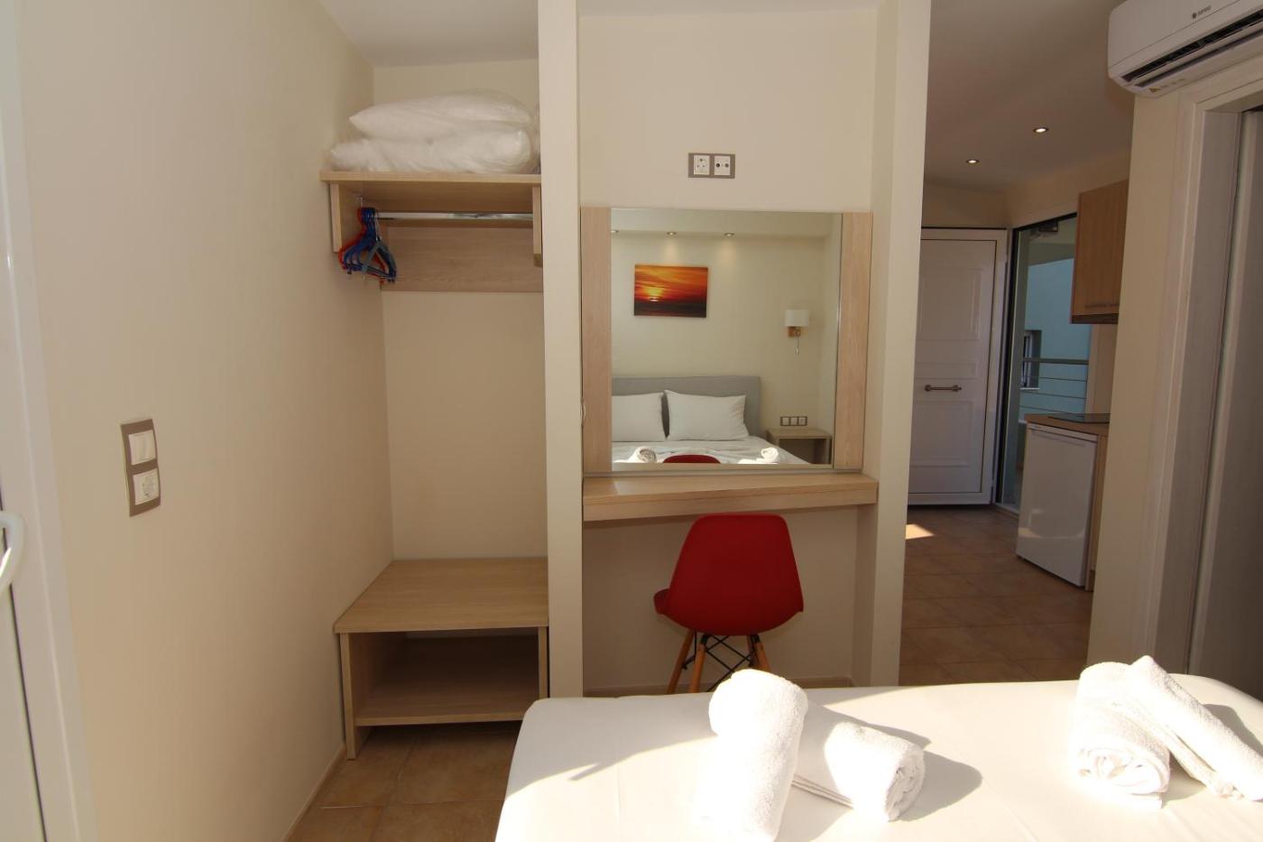 Studio Apartment. Boasting a private entrance, this air-conditioned apartment includes a kitchen, 1 bedroom and 1 bathroom with a shower and a hairdryer. In the well-fitted kitchen, guests will find a stovetop, a refrigerator, kitchenware and an electric kettle. Featuring a terrace with sea views, this apartment also offers soundproof walls and a flat-screen TV. The unit has 1 bed. ;