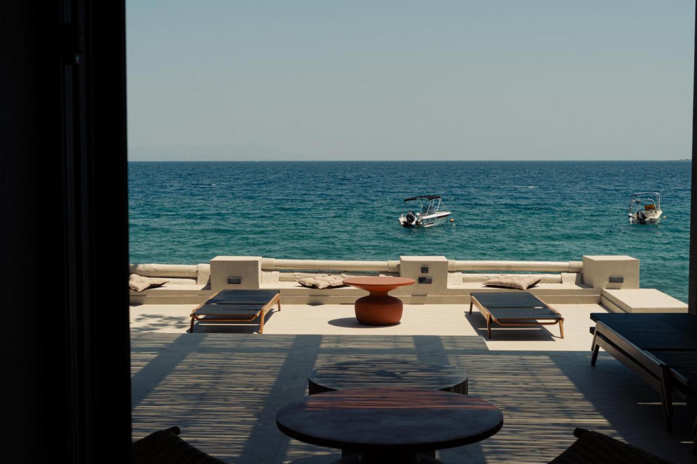 Deluxe Suite with Sea View. Boasting a private entrance, this air-conditioned suite includes 1 bedroom and 1 bathroom with a shower and a hairdryer. The unit has soundproof walls, sea views, a terrace and winechampagne is offered for guests. The unit has 1 bed. ;