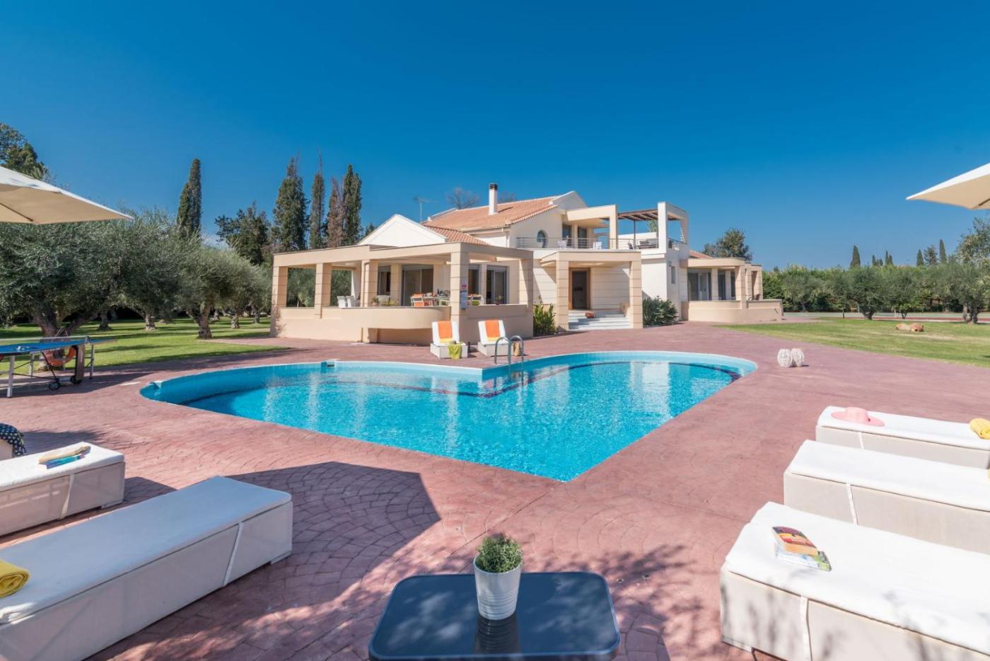 Villa with Private Pool. Featuring a private pool with a sun terrace, this villa includes: - 4 en-suite bedrooms - a fully equipped kitchen - a tennis court - a living room with a flat-screen TV.