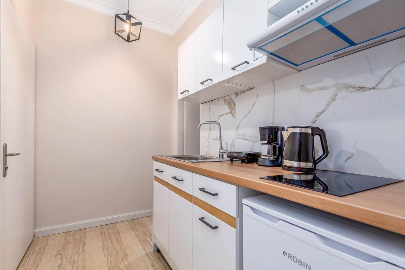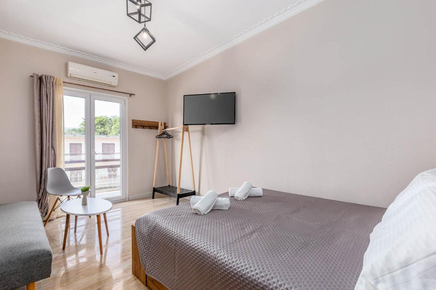 One-Bedroom Apartment. The air-conditioned apartment features 1 bedroom and 1 bathroom with a bath and a shower. Meals can be prepared in the kitchenette, which is equipped with a toaster. This apartment has a tea and coffee maker, a sofa, a flat-screen TV and a balcony. The unit offers 2 beds.