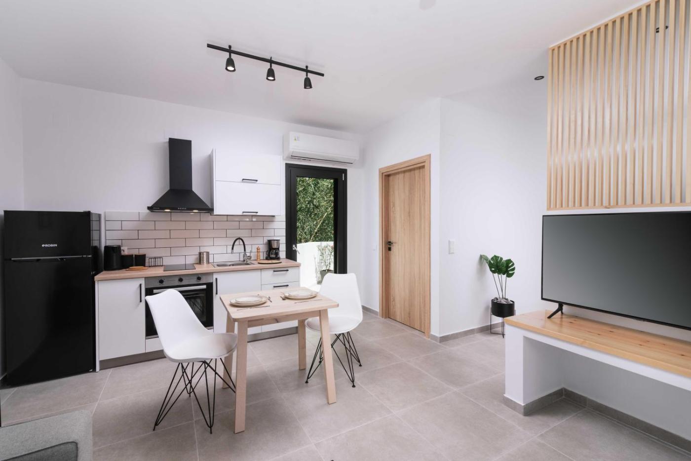 One-Bedroom Apartment. Boasting a private entrance, this air-conditioned apartment features 1 living room, 1 separate bedroom and 1 bathroom with a walk-in shower and a hairdryer. Guests will find a refrigerator, kitchenware and an electric kettle in the kitchen. The apartment also comes with a barbecue. Featuring a terrace with garden views, this apartment also features a washing machine and a flat-screen TV with streaming services. The unit has 2 beds.