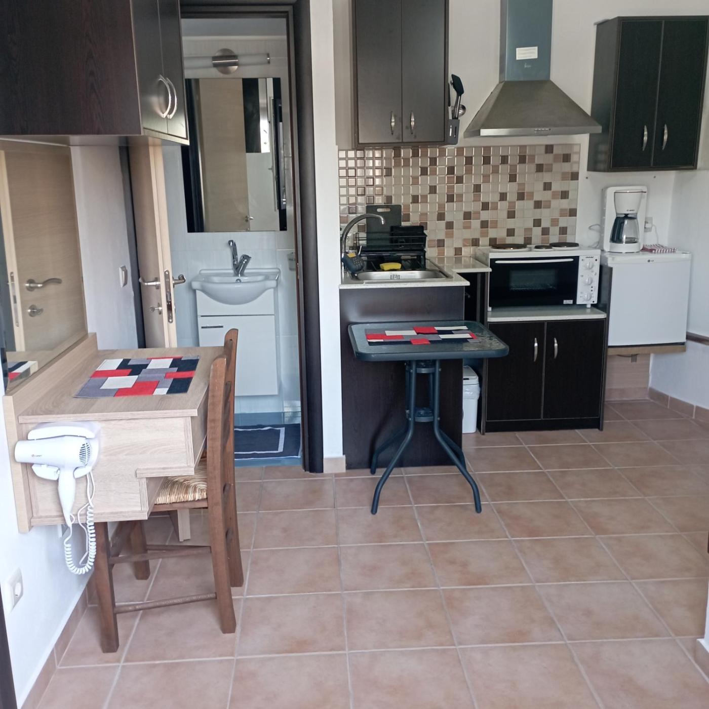 Each unit is equipped with a terrace offering quiet street views, a satellite flat-screen TV, a well-fitted kitchenette and a private bathroom with walk-in shower, slippers and a hair dryer. An oven, a fridge and stovetop are also provided, as well as a coffee machine. At the apartment complex, each unit is equipped with bed linen and towels.