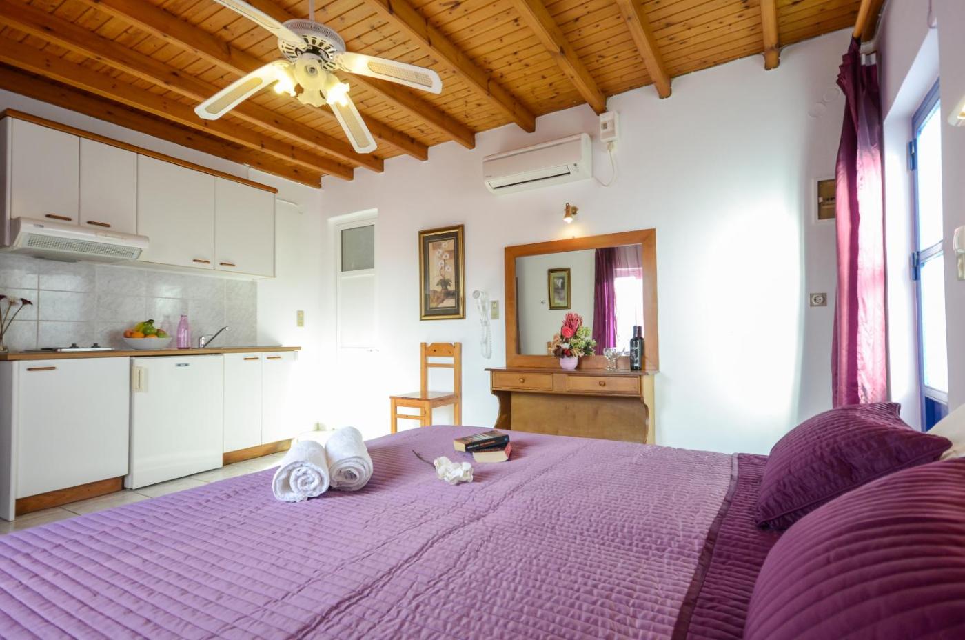 Decorated in purple tones, the air-conditioned studios of Panormos include a kitchenette with cooking hobs and fridge. Each unit comes with a private bathroom and a TV.