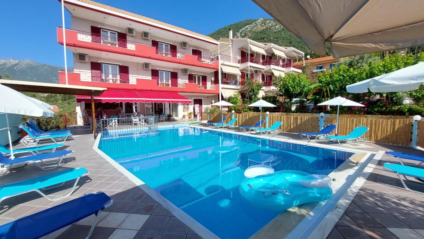Located in Nydri and only 1.3 km from Pasas Beach, Sunrise Studios provides accommodation with sea views, free WiFi and free private parking. The property features mountain and pool views, and is 1.5 km from Dimosari Waterfalls. The infinity pool features a pool bar and fence.