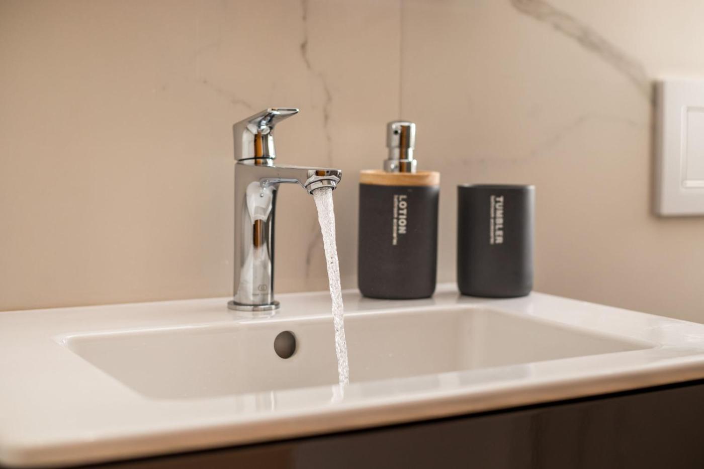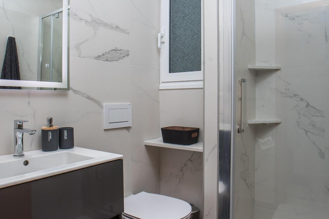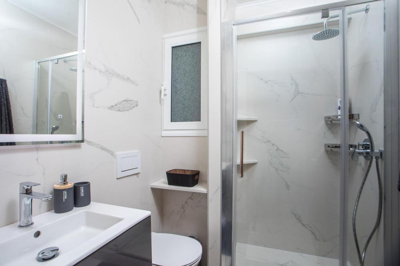 One-Bedroom Apartment. Boasting a private entrance, this air-conditioned apartment includes 1 living room, 1 separate bedroom and 1 bathroom with a walk-in shower and a hairdryer. In the well-fitted kitchen, guests will find a stovetop, a refrigerator, kitchenware and an oven. The apartment offers a washing machine, soundproof walls, a coffee machine, a flat-screen TV, as well as city views. The unit has 2 beds.