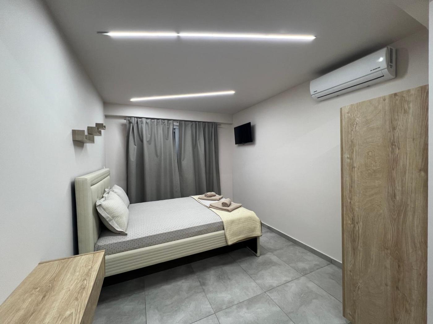 Standard Studio. Guests can make meals in the kitchenette that features a stovetop, a refrigerator, kitchenware and a microwave. This air-conditioned studio is comprised of a flat-screen TV with cable channels, a private bathroom as well as a terrace. The unit has 2 beds and 1 futon. ;