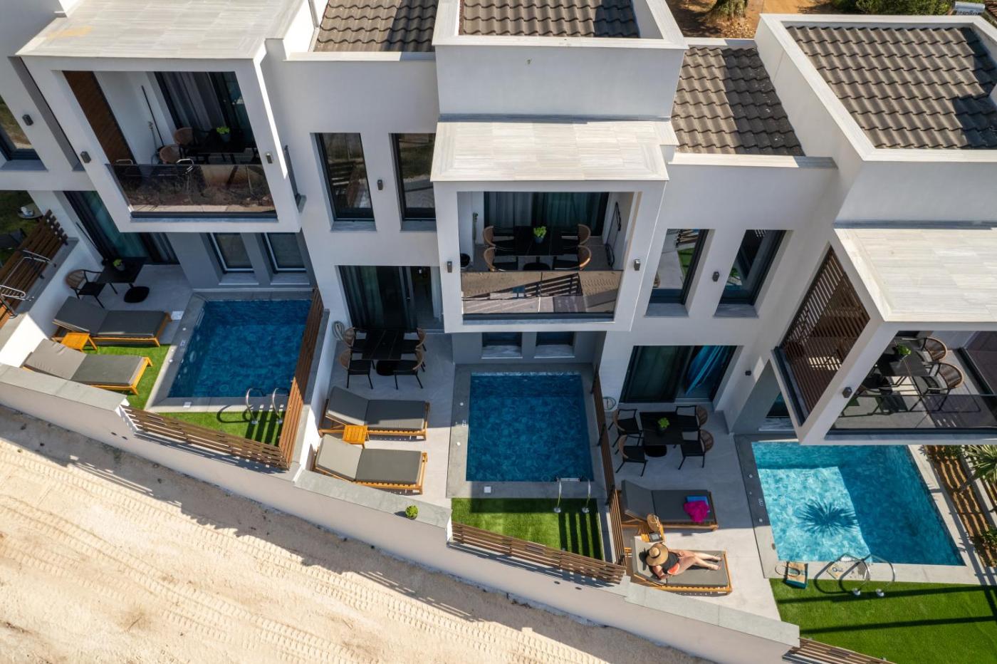 Suite with Private Pool. The pool with a view is a top feature of this suite. Boasting a private entrance, this air-conditioned suite comes with a kitchen, 1 bedroom and 1 bathroom with a shower and a hairdryer. The fully equipped kitchen has a stovetop, a refrigerator, kitchenware and a microwave. Featuring a terrace with sea views, this suite also features soundproof walls and a flat-screen TV with cable channels. The unit has 2 beds. ;