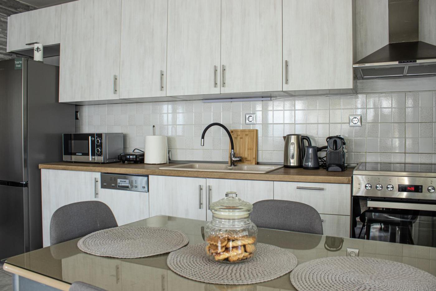 One-Bedroom Apartment. Boasting a private entrance, this air-conditioned apartment comes with a kitchen, 1 bedroom and 1 bathroom with a walk-in shower and a bath or a shower. The fully equipped kitchen has a stovetop, a refrigerator, a dishwasher and kitchenware. Featuring a patio, this apartment also features a washing machine, a coffee machine and a flat-screen TV with streaming services. The unit has 1 bed.