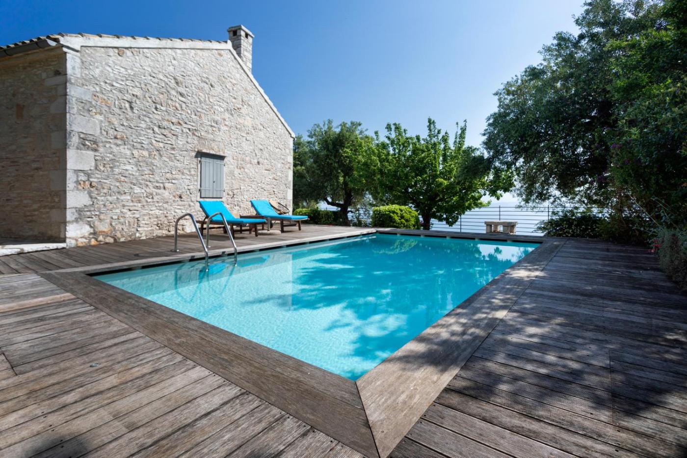 Two-Bedroom Villa. This villa boasts a pool with a view and a fireplace. Featuring a private entrance, this air-conditioned villa comprises a kitchen, 2 bedrooms and 2 bathrooms with a bath and a shower. Guests will find a stovetop, a refrigerator, a dishwasher and kitchenware in the well-equipped kitchen. The villa also provides guests with a barbecue. Boasting a terrace with sea views, this villa also provides a washing machine and a flat-screen TV with cable channels. The unit offers 2 beds.
